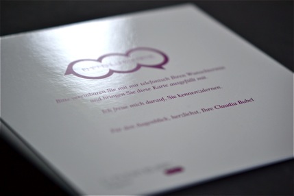 Für Karten und Folder wurde weißer Chromolux 700er Karton gewählt. So entstand ein haptisches Wechselspiel zwischen matten und glänzenden,