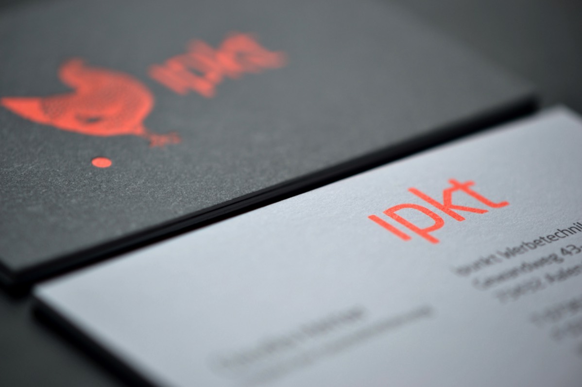 PAPIER. Die Visitenkarten wurden gedruckt auf »Metapaper«, extrarough, white, 430g/qm, das Logo wurde einseitig tiefgeprägt.