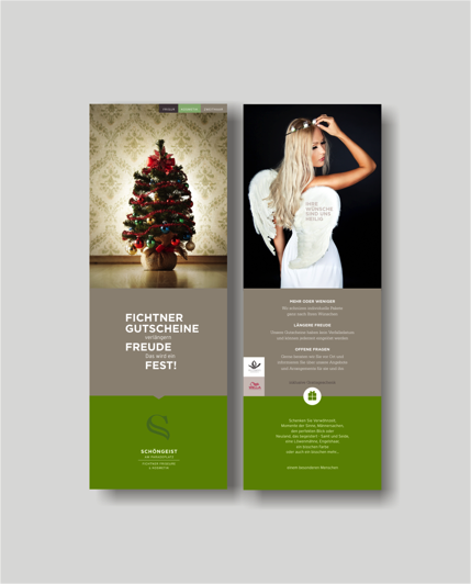 Weihnachtskarte »Zur Jahreswende sagt Fichtner danke« // Flyer »Fichtner Gutscheine verlängern Freude«