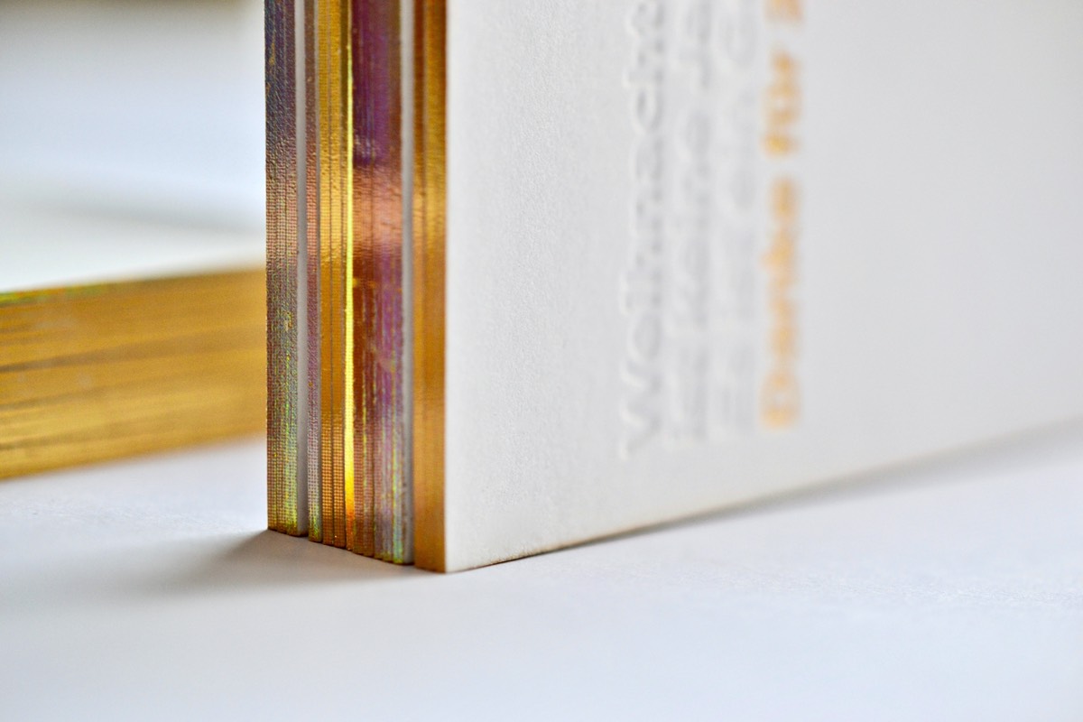Die Blindprägung - tief versenkt in softem Feinstpapier aus reiner Baumwolle verführt zu Berühren. Heißfolienprägung und Folienschnitt mit glänzendem Hologrammeffekt bescheren die passenden Lichtspiele zum Fest. Ich wünsche besinnliche Weihnachten und ein glanzvolles neues Jahr 2019!
