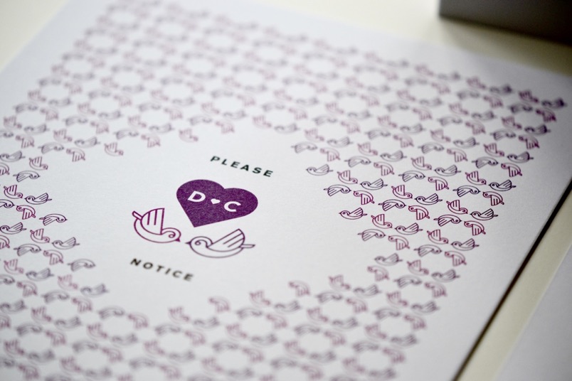 taucht immer wieder auf: zwei kleine Vögel mit den Initialen des Hochzeitpaars vereint in einem Herz.