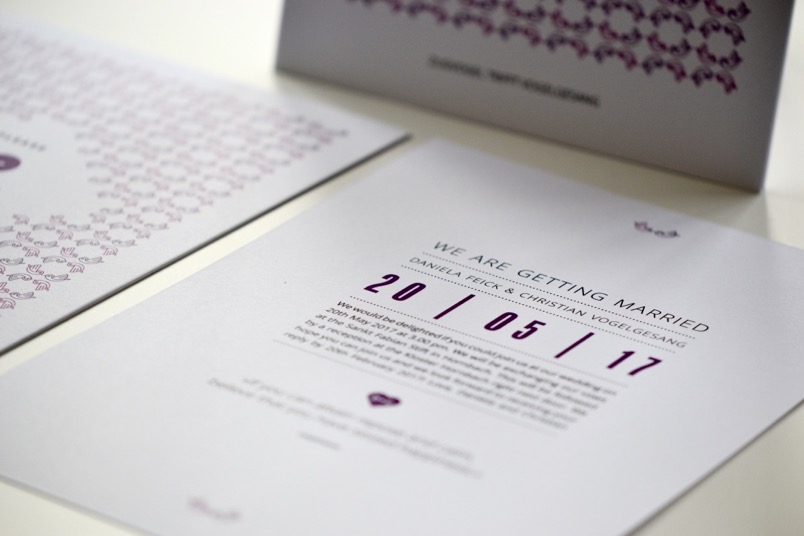 Realisiert wurden Einladungskarte, Infokarte, Fotokarte, Danksagung, Who is Who-Broschüre, Gästebuch, Aufkleber, Anhänger